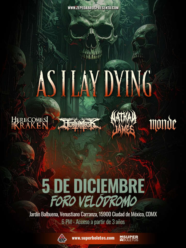 Este nuevo sencillo, junto con “Echoes”, son la prueba irrefutable de que el nuevo capítulo de As I Lay Dying viene con fuerza. No te puedes perder el regreso de esta banda icónica del metalcore a México este 5 de diciembre en el Foro Velódromo, evento organizado por Zepeda Bros., donde además se estarán presentando dos de las bandas más importantes de deathcore en México: Here Comes The Kraken y Deathmask, así como el proclamado rey del Nu Nu Metal: Nathan James, y una de las promesas del trap metal: Monde.
