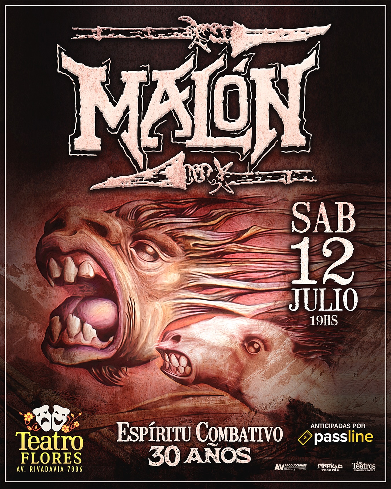 La legendaria banda de Metal argentino Malón, confirma su nueva gira llamada “Espíritu Combativo 30 años”, la cual arranca el sábado 12 julio en el Teatro Flores (C.A.B.A). Los tickets ya se encuentran activos a través del sistema de PASSLINE.