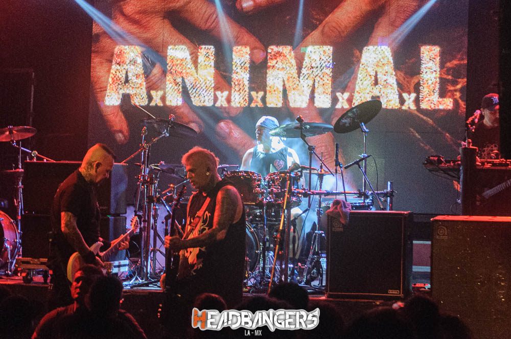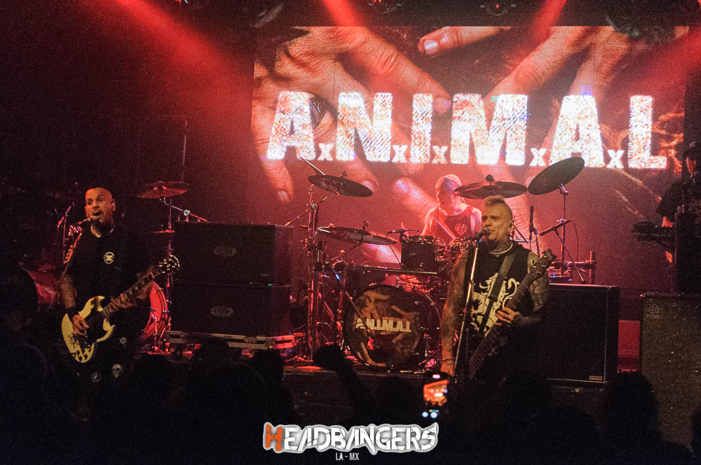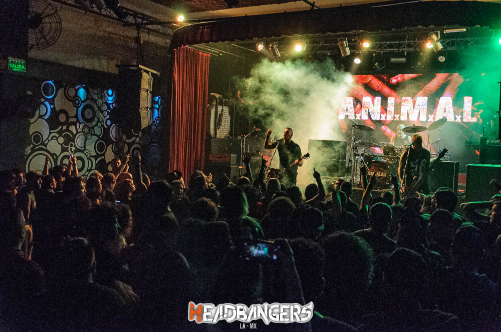 Los legendarios A.N.I.M.A.L, secundaron el cartel, con un agresivo show que despertaba instintos juveniles del Hard-Core bonaerense, Andrés Jimenez su líder, sigue impecable con su voz y descarga, el resto de la banda tiene una pulcritud impecable a la hora de la descarga, y eso hizo que se completara el círculo de una tarde/noche que deleitó a los presentes.