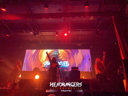 El frontman Kam Lee apareció al inicio con una máscara de luchador (regalo local), gesto que despertó ganas de caos inmediato La banda y el público conectaron rápido: los veteranos fans reconocían los clásicos, los nuevo entraban al torbellino y el mosh pit no paró.