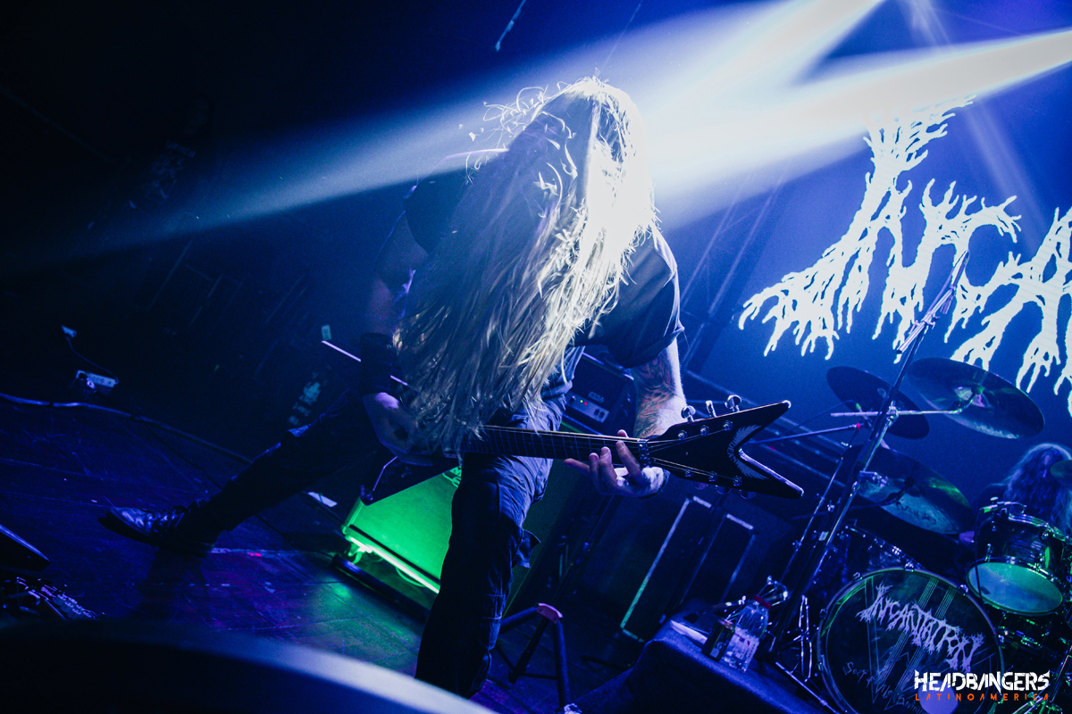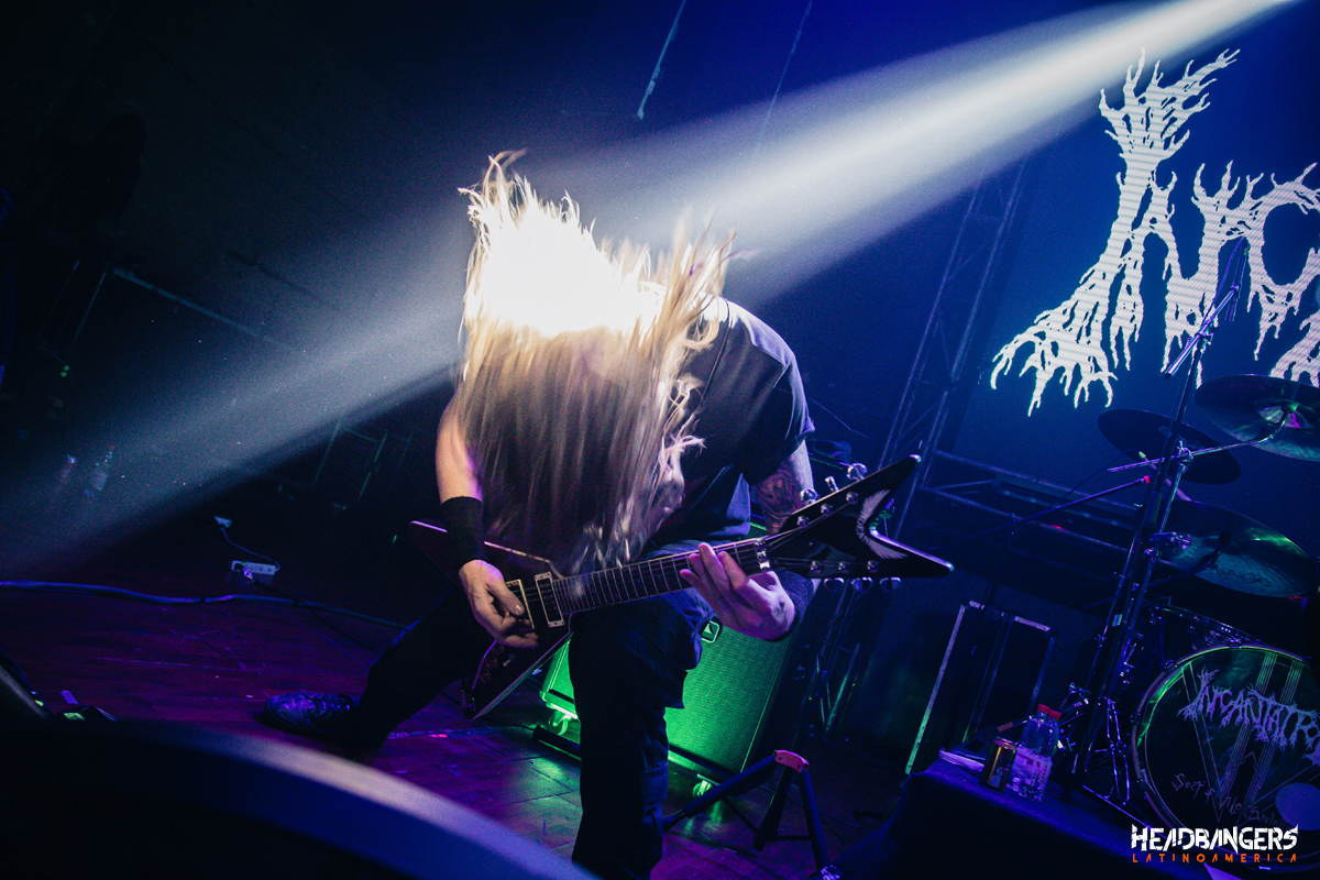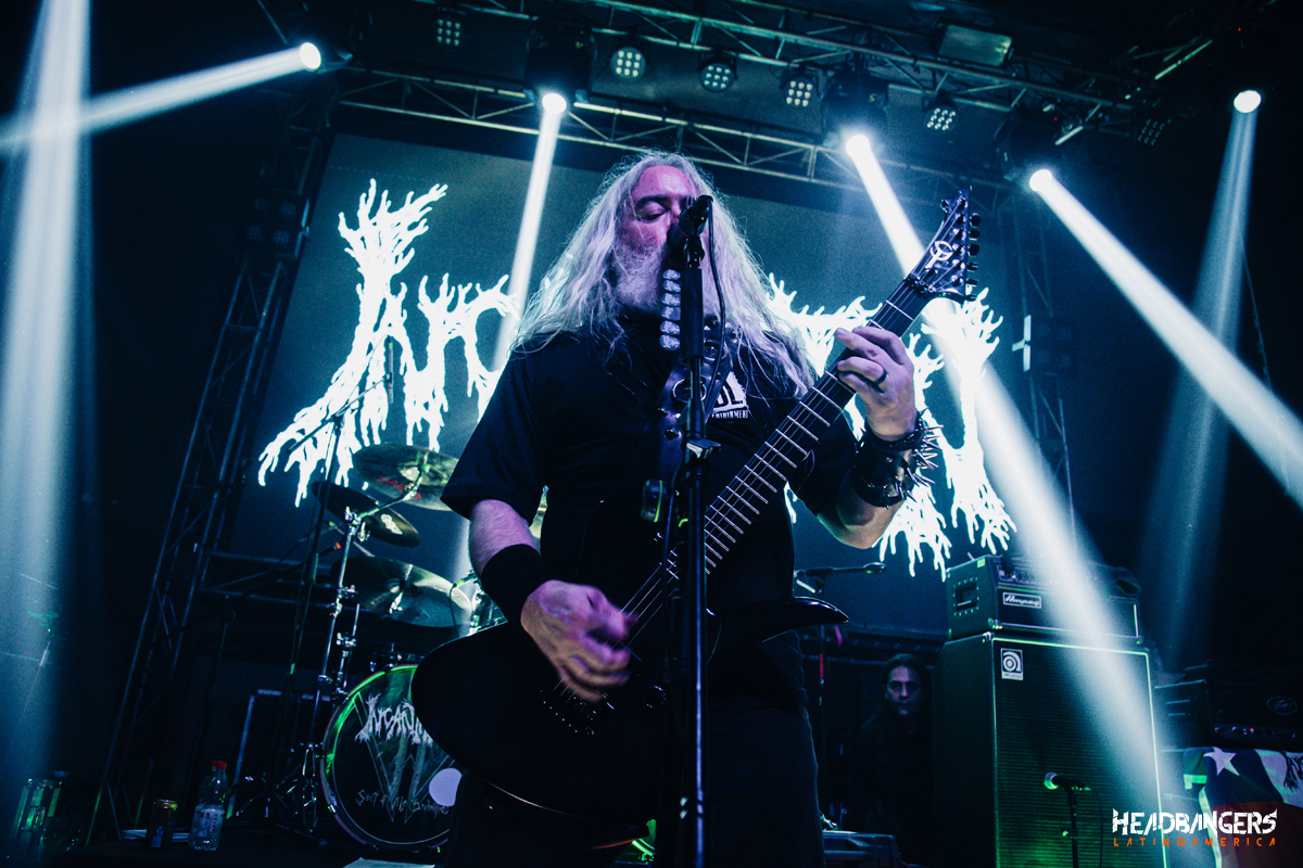 Luego vendría el turno de los estadounidenses de Incantation a eso de las 20:00 hrs. se apagan las luces y salen al escenario con ‘Propitiation’, ‘Ethereal Misery’ el recinto comenzaba a llegar al tope de su aforo, John McEntee solo sonreía y agradeció al público por la gran cantidad de cariño que recibieron apenas se subieron al escenario, luego de una pequeña presentación la banda nos vuelve a subir con Death Metal puro y directo con ‘Carrion Prophecy’ y ‘Entrails Of The Hag Queen’, ‘Emaciated Holy Figure’, ‘Forsaken Mourning of Angelic Anguish’, John McEntee totalmente atónito, por el enorme cariño y locura que recibe por parte del recinto completamente lleno quienes gritan y cantan “In-can-tation” a todo pulmón.