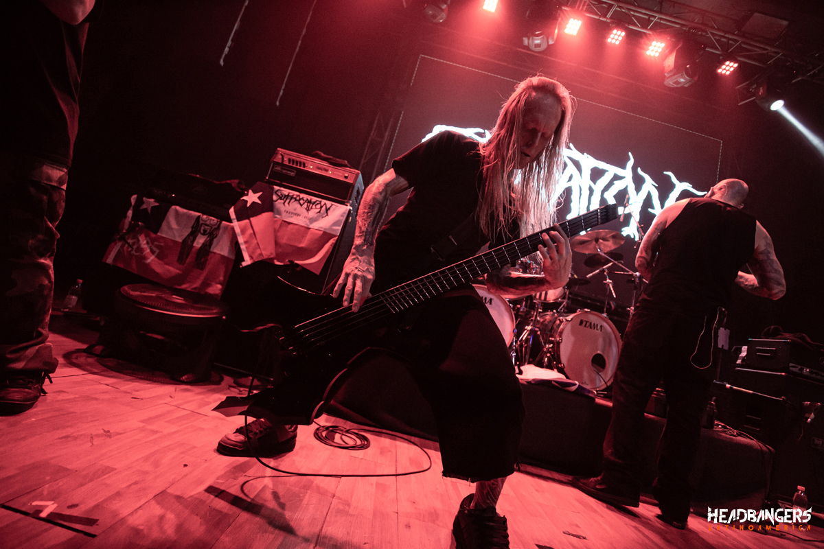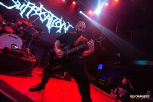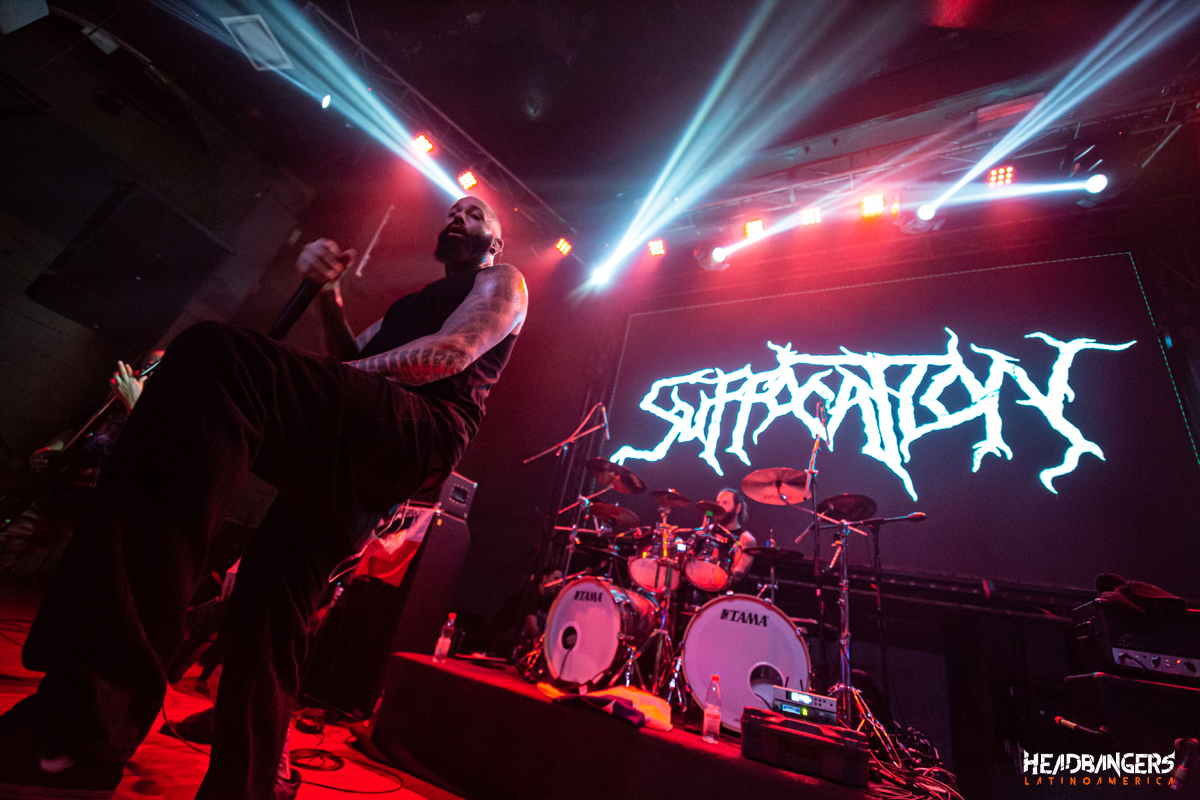 Cercano a las 22:00 hrs salen a escena los neoyorquinos de Suffocation, Ricky Myers, Terrance Hobbs, Charlie Errigo, Derek Boyer y Eric Morotti salieron al escenario a dar una cátedra de brutalidad musical de Death Metal directo a los oídos ‘Liege of Inveracity’ y ‘Effigy of the Forgotten’ que desató el mosh y la locura con unos breakdowns que sonaron salvajes y directos al cuello, siguiendo con el clásico ‘Catatonia’. El recinto completo se convirtió en un centro de batalla brutal, sin pausas ni respiros la banda volvía a remeter con temas como “Thrones of Blood”, “Jesus Wept” y “Pierced For Within” con el público totalmente extasiado, con salvajes moshpit que no pararon en ningún minutos ya que Rick Myers los convocaba a seguir girando.